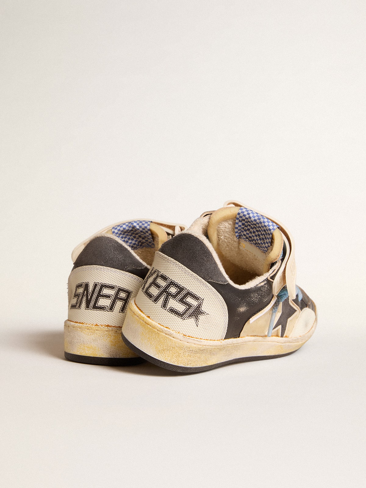 Inspired by skater and model Brooklinn Khoury. this Ball Star Pro is a tangible keepsake from our HAUS of Dreamers Paris event. This men's model features a distinct lived-in effect. visible on the leather upper and the star with polyurethane inserts. both in black. Highlighted by the rubber sole. strap detail and terry lining. this distressed effect evokes a retro vibe. while the exposed foam rubber strap features a Velcro fastening that guarantees a locked-in fit.In a limited edition. the Brooklinn Khoury Ball Star Pro is specifically made for skateboarding thanks to its special supports in diamond textured rubber: a half-moon on the outer side and a spur at the rear. Carefully positioned where it counts. they reduce impact while providing greater durability for professional performance. Blue laces and a checkerboard tongue in contrasting colors add the finishing touch.