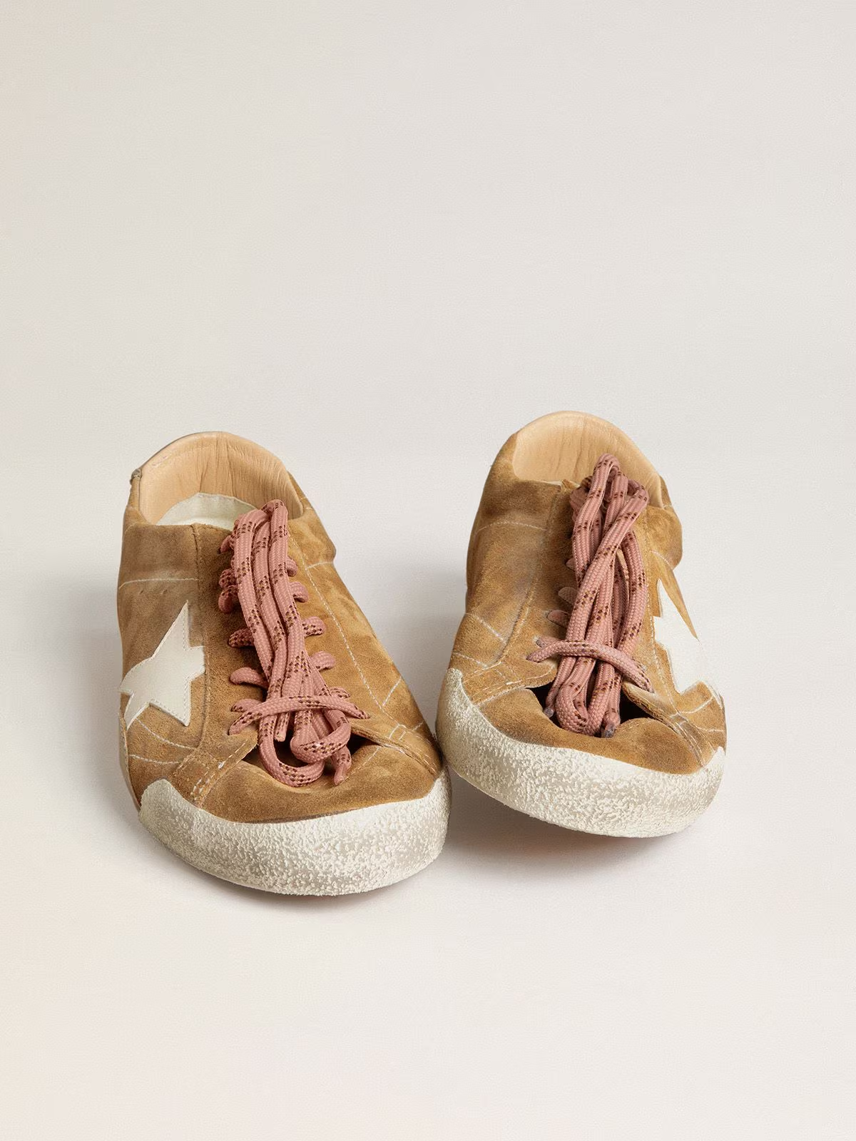 True-Star Donna in suede color tabacco con stella bianca e talloncino platino